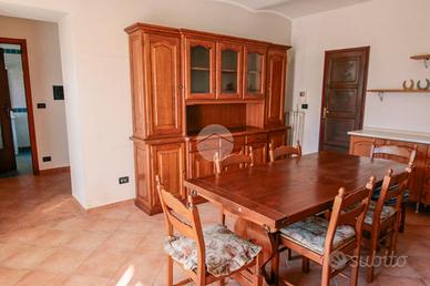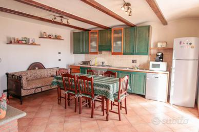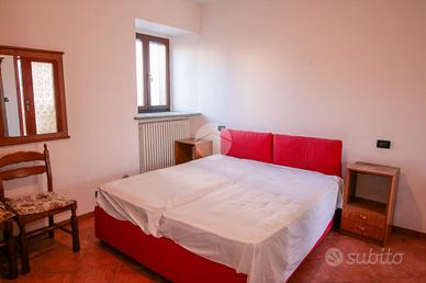 Nella tranquilla frazione di Sant'Anna, casa indipendente sui tre lati con cortile privato e terreno agricolo. La soluzione si sviluppa su due piani abitativi e gode di un sottotetto non abitabile accessibile da scala interna. Il piano terreno ospita un ampia zona giorno, un bagno dotato di doccia ed una comoda cantina comunicante. La zona notte posta al piano superiore, raggiungibile dalla scala interna in muratura, gode di un secondo bagno, di un funzionale studio ed di un terrazzo. L'immobile è stato oggetto di ristrutturazione. La travata laterale a pertineza dell' unità abitativa si adatta a molteplici usi.