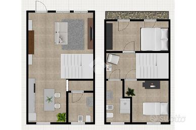 Situata in un caratteristico contesto di corte, a pochi passi dalla piazza del paese, la proprietà si sviluppa su due piani abitativi più un sottotetto sfruttabile come mansarda. Entrando, un luminoso soggiorno accoglie con molta luminosità, cucina a vista e un primo bagno completano il piano terra. Al piano superiore si trovano due camere da letto ampie e luminose, oltre a un grande bagno con doccia e un balcone con ottima esposizione. Salendo ancora, si accede alla mansarda con travi a vista, ideale come spazio relax o studio.