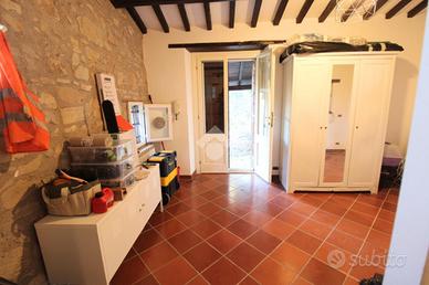 Accanto, quasi fosse un piccolo mondo a parte, la dependance accoglie gli ospiti o chi desidera uno spazio personale: una stanza con bagno privato, perfetta per creare un angolo di creatività, meditazione o ospitalità.