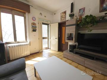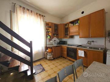 Questa abitazione, costruita nel 1960, si estende su una superficie di 100 mq e offre spazi ben distribuiti su due livelli.