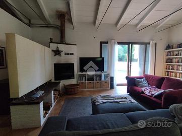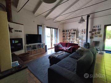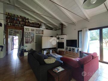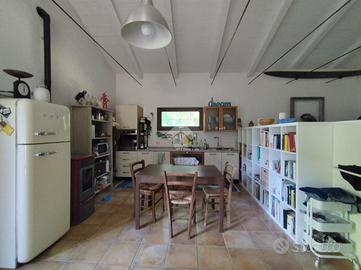 La zona giorno è spaziosa e accogliente, con un grande salone dotato di camino e stufa a legna.