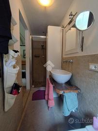 La cucina e la zona notte si trovano in un unico ampio ambiente, separati visivamente da una libreria, soluzione che conferisce all'ambiente un'atmosfera calda e informale. Il bagno è stato completamente ristrutturato, moderno e funzionale.