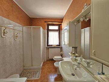 RONDISSONE: In zona comoda ai servizi; Casa indipendente con cortile privato di 400 mq. La proprietà si sviluppa su due livelli collegati mediante scala esterna. L'abitazione principale di 110 mq. è ubicata al piano primo, ristrutturata nell'anno 1994. Ingresso su ampia zona giorno con cucina a vista e camino a legna termoventilato. Dal disimpegno si raggiunge la zona notte, costituita da due camere da letto, un antibagno e un bagno spazioso con doccia. Tutti gli infissi sono in legno con doppi vetri, zanzariere e tapparelle. Il riscaldamento è alimentato a metano tramite radiatori con caldaia a condensazione. Sullo stesso livello sono presenti altre due stanze con ingresso dal balcone. Il piano terra dispone di una seconda abitazione di 100 mq. dalla quale attualmente sono stati ricavati due alloggi che si possono nuovamente unire riaprendo semplicemnte una porta interna. La medesima abitazione dispone di soggiorno, cucina, tre camere e doppi servizi. Inoltre sono presenti due caldaie per lo stato di divisione attuale. Anche al piano terra gli infissi sono in legno con doppi vetri e due porte d'ingresso. Attraversando il cortile si hanno a disposizione due comodi box auto, una tettoia, un magazzino e un portico coperto di 20 mq. attrezzato con camino a legna e area relax per la stagione estiva. L'intera proprietà dispone di ambienti interni spaziosi e luminosi e la buona distribuzione dei locali consente svariate soluzioni ai fini di personalizzare e sfruttare al meglio tutti gli spazi presenti. Il tetto della casa si presenta in ottimo stato conservativo, rifatto e coibentato nell'anno 1994 con inserimento di canna fumaria in acciaio.