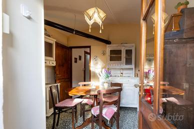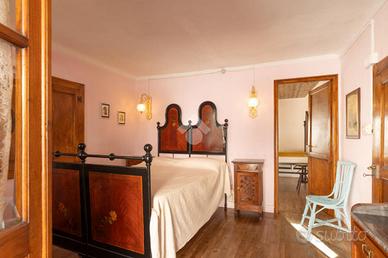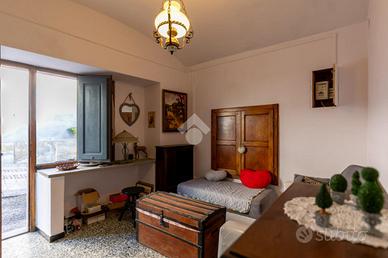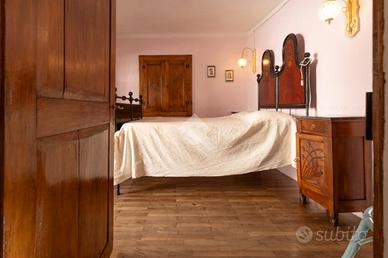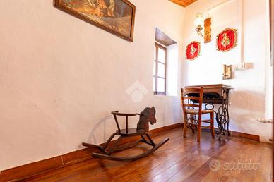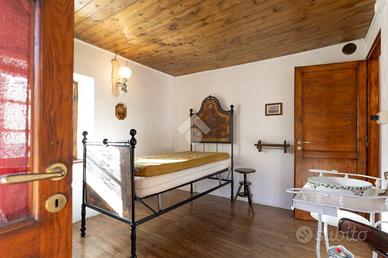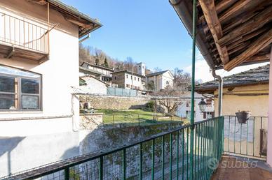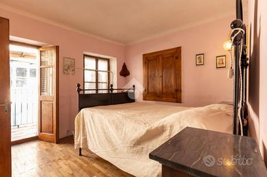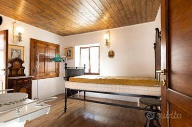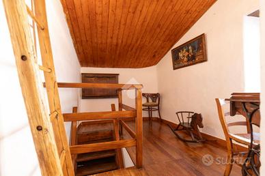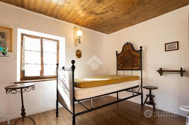 Nel cuore del paese, tra il municipio e la piazza centrale, a circa 950 metri sul livello del mare, questa casetta indipendente conserva intatto il sapore delle abitazioni di montagna di una volta, quelle che sanno accogliere con calore e autenticità fin dal primo sguardo. Una posizione centrale ma raccolta, dove tutto è a portata di mano e l'atmosfera resta genuina e rilassata. L'abitazione è disposta su tre livelli, di cui due abitativi, con ingresso principale a livello strada e privo di gradini, dettaglio pratico e raro nelle case di questo tipo. Al piano terreno si viene accolti da un grazioso salottino, intimo e conviviale, che introduce alla cucina, vero cuore della casa. Qui il tempo sembra rallentare: l'ambiente sprigiona un fascino chabby chic, fatto di arredi chiari, dettagli curati e luce naturale, con la stufa a legna a scandire le stagioni e l'affaccio sul balcone a regalare aria e luminosità. Il piano si completa con un bagno finestrato, semplice e funzionale. Un'originale scaletta interna in legno, elemento distintivo e caldo, conduce al piano primo. Il piano d'arrivo, sfruttabile come studiolo, angolo lettura o zona polivalente, anticipa la zona notte, composta da due camere da letto di dimensioni contenute, facili da scaldare e comunicanti tra loro, secondo la tradizione delle case di montagna. Le camere sono valorizzate da pavimentazioni in legno, soffitti rivestiti in perline, originali porte interne e serramenti anch'essi in legno, un insieme coerente che trasmette continuità, calore e un senso di autentica accoglienza. Gli ambienti affacciano sulle lunghe balconate, recentemente rifatte con assiti in legno, che accompagnano lo sguardo verso il borgo e i profili montani. A completare la proprietà vi sono locali sgombero e cantine, sia al piano seminterrato sia lateralmente all'abitazione, spazi preziosi per riporre attrezzature, legna, biciclette o tutto ciò che serve per vivere appieno la montagna senza rinunciare all'ordine. Una casa tipic