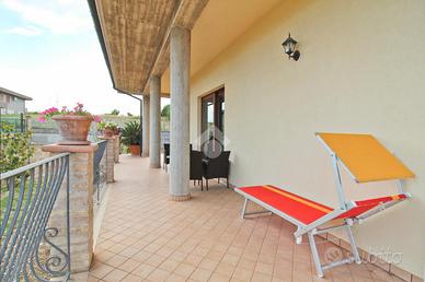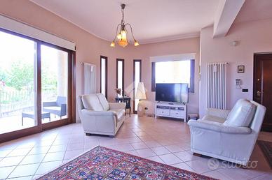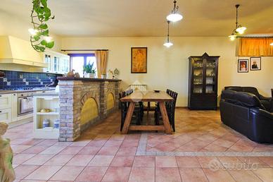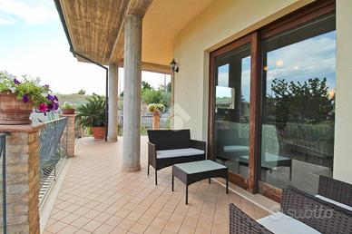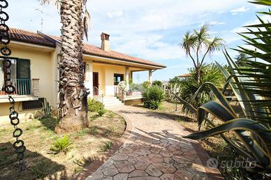 Nella zona collinare di Roseto degli Abruzzi, proponiamo in vendita villino su due livelli con terreno agricolo annesso. Contattaci per ulteriori informazioni. Il fabbricato, in cemento armato, è edificato su di un lotto di circa 800 mq ed è delimitato da una rifinita recinzione in mattoni e ferro battuto. Internamente troviamo al piano terra rialzato un appartamento di circa 140 mq calpestabili composto da un reparto giorno con un ampio e luminoso salone con sala da pranzo, una cucina separata ed un comodo porticato con vista mare e montagna ideale per godersi momenti in traquillità ammirando i colori della natura; la zona notte invece si struttura con una cameretta, due camere matrimoniali di cui una con bagno in camera, una stanza stireria/guardaroba ed un bagno finestrato con doccia. Al piano seminterrato troviamo una taverna, con cucina open space, dallo stile rustico caratterizzata da un camino a parete in muratura, una dispensa, due camere da letto di cui una con bagno in camera, un ampio bagno con finestra e doccia, una zona lavanderia ed una cantina. Completano la proprietà una corte pavimentata ideale per godere dei momenti in compagnia con la famiglia e gli amici e sulla quale è possibile parcheggiare diverse auto; una soffitta da utilizzare come ripostiglio; un terreno agricolo di circa un ettaro che può essere parzialmente utilizzato per chi ami passare il tempo facendo un orto e per ricavare un' area dedicata allo svago e al relax ricavando una piscina. I punti di forza di questo villino sono sicuramente gli spazi e la comodità oltre che essere in una zona tranquilla ma a soli 4 km dal centro di Roseto nonché dal mare e a 2 km da tutti i principali servizi. Quest' immobile è la soluzione ideale per una o più famiglie che desiderano vivere in completa libertà senza avere preoccupazioni condominiali ma può essere anche il rifugio per tutte quelle persone che vogliono avere una casa in zona mare per riposarsi e ricaricarsi dai ritmi frenetici del