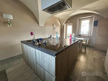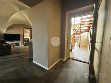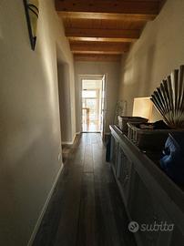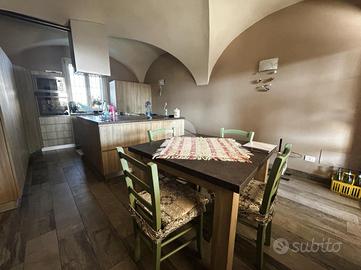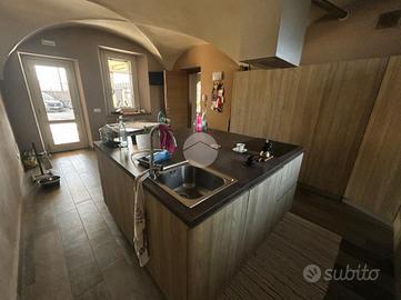 L'ingresso principale è dal parcheggio esterno di proprietà, mentre il secondo ingresso, attraverso un cancello, conduce a un ampio cortile privato e una zona piastrellata, ideale per momenti di relax all'aperto. Il piano terra accoglie un ampio e luminoso soggiorno e una cucina separata, entrambi caratterizzati dalle suggestive volte che richiamano la tradizione. Sempre al piano terra, troviamo un comodo bagno di servizio finestrato, dotato di una moderna doccia walk-in.