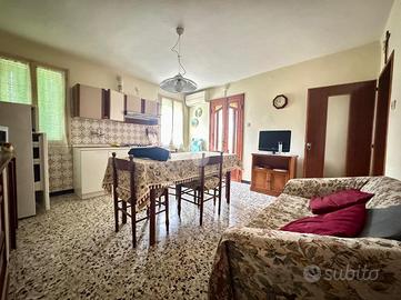 Varcando l'ingresso dell'abitazione accediamo ad un accogliente salotto dal quale possiamo raggiungere un' ampia sala da pranzo con cucina, dotata del primo bagno finestrato con doccia, e ad una seconda stanza. Dalla cucina è possibile l'accesso a una veranda e al giardino posto sul retro della casa dove sono presenti inoltre 2 cantine.