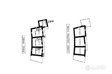 l'immobile è composto al piano terra da una cucina, una camera, due locali sgombero ed una cantina. Al piano primo da una camera, bagno e tre locali di sgombero.