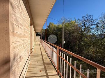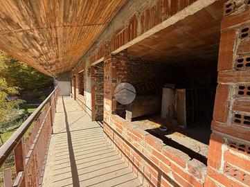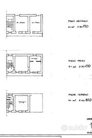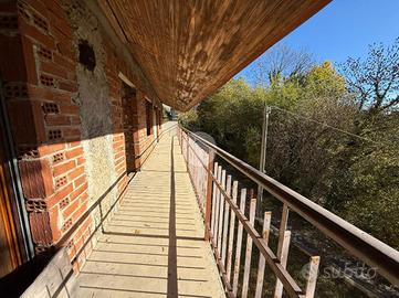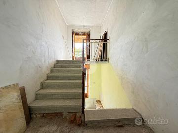 Tramite il vano scala si accede al primo piano composto da tinello con cucinino, camera da letto e balcone. Il bagno è posto nel vano scala. Completa la proprietà il sottotetto al piano superiore, allo stato grezzo, non rifinito, con un balcone.
