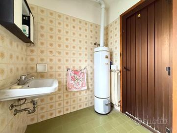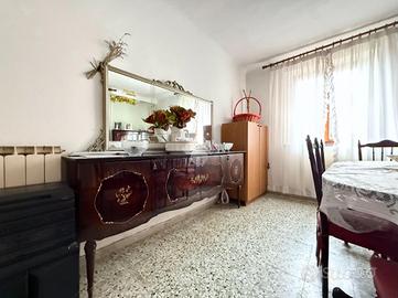 Si tratta di un terra-tetto, al piano terrà siamo accolti da un'ampio disimpegno che divide i principali ambienti. A destra e sinistra due ampie stanze, una utilizzata come camera per comodità della proprietà, mentre l'altra è stata adibita a soggiorno. Di fronte, invece, si apre cucina abitabile che per spazi e caratteristiche, rispecchia lo stile degli anni di costruzione.