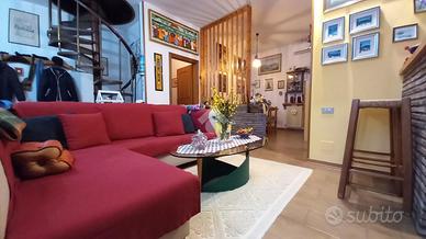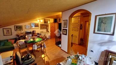 La soluzione si presenta già divisa in due appartamenti. Al piano terra si sviluppa uno dei due appartamenti, il quale si compone di: soggiorno, cucina abitabile, due camere da letto, bagno, ripostiglio lavanderia, due cantine ed il garage. L'appartamento al piano superiore si sviluppa su due livelli ed offre i seguenti spazi: soggiorno, tinello e zona cottura, due camere da letto, bagno e ripostiglio. Mediante una scala in arredo si accede al piano mansardato sovrastante suddiviso in 3 ambienti, un bagno e ripostiglio.