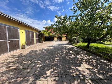 La soluzione presenta un ampio giardino che si sviluppa sul fronte dell'abitazione, mentre a lato troviamo il box che può ospitare oltre quattro autovetture.