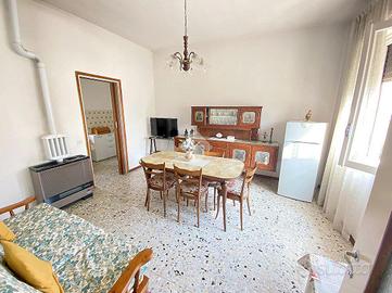 All'abitazione di 85 mq. si accede da un terrazzino coperto posto all'ingresso con un comodo disimpegno e un soggiorno con cucinotto separato. Nella zona notte sono presenti due camere matrimoniali, di cui una dotata di balcone e un bagno completo con vasca.