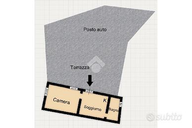 La proprietà si sviluppa al piano terra e comprende due locali: una camera da letto ampia e luminosa, un soggiorno con angolo cottuttua e un bagno con la finestra.