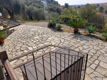 Il giardino privato, pavimentato con pregiata pietra di Luserna, è perfetto per momenti di relax all'aperto, appofittando delle belle giornate di sole che permettono di mangiare fuori godendo di una vista mare che incanta.