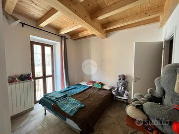 La camera matrimoniale è dotata di una pratica cabina armadio e di un balcone alla francese, perfetto per godere di un po' di luce naturale. Il piano è completato da un bagno finestrato con ampia doccia e da un pratico disimpegno. Salendo ulteriormente, troviamo un'ulteriore camera di generose dimensioni, arricchita da splendide travi a vista e da un secondo balcone.