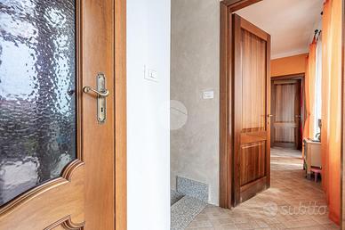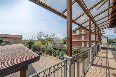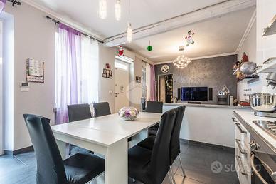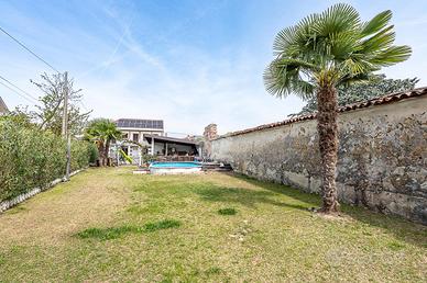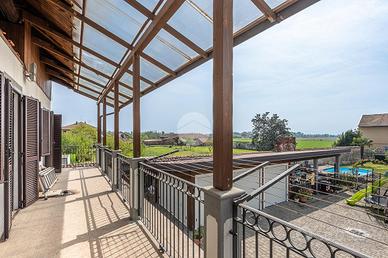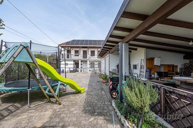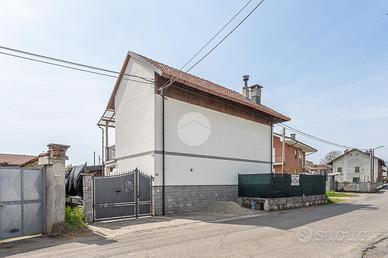 San Francesco al Campo Proponiamo in vendita una splendida casa indipendente di circa 100 mq, libera su quattro lati, completamente ristrutturata, dotata di pannelli solari con impianto da 8 kW e riscaldamento con caldaia ibrida. L'ingresso è sulla zona giorno, un luminoso open space con soggiorno e cucina; il disimpegno conduce al primo bagno e al vano scala. Al piano superiore troviamo il secondo bagno e le due camere da letto, spaziose e luminose; tutto il primo piano si apre su un magnifico terrazzo coperto a tutta lunghezza, da cui si ammira una splendida vista sul verde circostante. Gli spazi esterni sono ben organizzati e ideali per ogni esigenza: l'ampio cortile circonda la casa e ospita box doppio, posto auto coperto e tettoia di generose dimensioni. Il giardino è ben curato ed è arricchito da impianti di illuminazione e irrigazione, oltre alla piscina seminterrata; nella parte finale è presente uno spazio separato dedicato all'orto. La proprietà si trova in zona estremamente tranquilla e immersa nel verde, pur restando a pochi passi dai principali servizi del paese e dalle principali vie di comunicazione con i paesi vicini e con Torino.