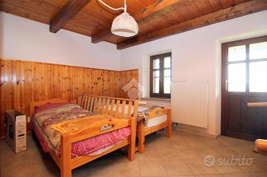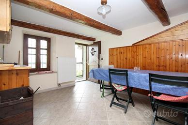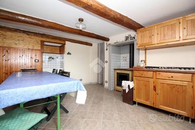 In borgata immersa nella natura, a circa 3 km dal centro del paese, proponiamo casa indipendente con sfogo esterno privato. La soluzione si suddivide su tre livelli. Al piano terra troviamo la cantina e i locali sgombero. Al piano primo, accessibile tramite scala esterna, si sviluppa la parte abitativa principale, composta da ingresso sulla cucina abitabile con stufa a legna e soggiorno. Al piano secondo, tramite scala interna, si accede alla zona notte composta da due camere da letto e bagno finestrato. Adiacenti alla casa, sono compresi altri locali, tra cui una cucina abitabile con stufa a legna, una camera da letto e un bagno completo di box doccia e finestra. Inoltre, la proprietà dispone di un cortile esclusivo e di una porzione di terreno privato. I serramenti sono stati sostituiti di recente, in legno con doppio vetro camera e l'impianto di riscaldamento è alimentato da una caldaia a legna con apposito bollitore per acqua calda sanitaria. La casa gode di una stupenda vista sulle montagne e viene venduta completa di arredamento.