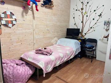 L'ingresso all'abitazione e nel disimpegno che divide tutti gli ambienti, tra cui, il soggiorno con accesso al cortile, la cucina abitabile, le due camere da letto di cui una matrimoniale ed una singola ed il bagno con doccia.