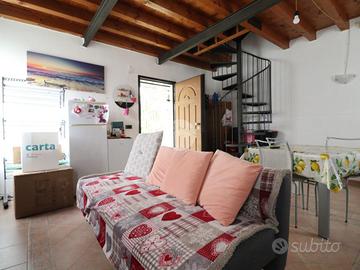 Al piano rialzato troviamo la zona giorno, mentre, al primo piano troviamo camera da letto e bagno.