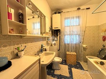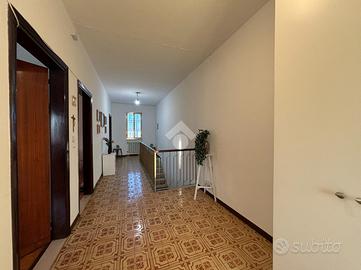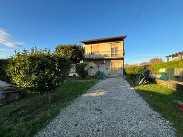 A due passi dal centro al paese, comoda a tutti i servizi che la zona offre quali scuole, autobus, bar, farmacia e supermercato, casa singola sviluppata su due livelli con giardino. Al piano terra l'immobile è composto dalla zona giorno dove abbiamo la cucina abitabile, separata dal soggiorno, che ad oggi viene utilizzato come camera. Completa il piano terra il bagno finestrato con vasca e un comodo ripostiglio, ricavato nel sottoscala. Salendo poi le scale raggiungiamo la zona notte, composta da un ampio disimpegno che porta alle tre camere da letto, matrimoniale doppia e singola. La zona notte è inoltre servita da una terrazza. Al piano terra, collegato internamente all'immobile, troviamo infine uno sgombero utilizzato come garage, dove è stata ricavata la lavanderia. L'immobile si trova i buone condizioni in quanto è sempre stata fatta la manutenzione ordinaria, recentemente sono stati rifatti il tetto e l'impianto elettrico.