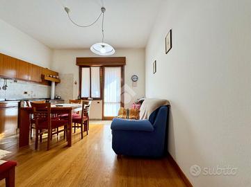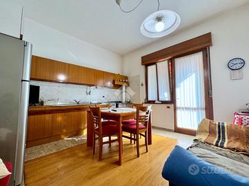 L'ingresso si apre su un grande corridoio sul quale affacciano i locali. Della zona giorno con una cucina spaziosa, il soggiorno ampio e luminoso con porta finestra sullo spazio esterno e un bagno con lavanderia.