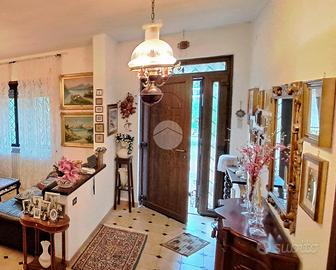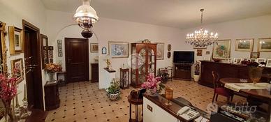 Antistante il portone d'ingresso c'è un grande terrazzo pavimentato, da qui accediamo direttamente alla zona giorno, dove troviamo un ampio salone e la cucina abitabile arricchita dalla presenza di un camino. Un corridoio separa la zona notte, qui ci sono due camere da letto, entrambe godono della stessa balconata con affaccio panoramico sul Lago. Il bagno è uno ed è dotato di vasca.