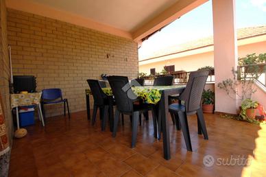 L'immobile è composto da 3 appartamenti al lato sinistro del cortile, di cui due posti al piano terra di circa 60 mq ciascuno composti da cucina abitabile, 2 camere con bagno; al piano superiore, invece, vi è un appartamento di 97 mq composto da corridoio di ingresso, cucina abitabile con terrazzo, sala da pranzo, cameretta, camera da letto matrimoniale e bagno.