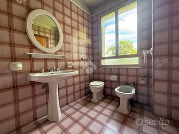 Dalla terrazza lato Sud si accede anche alla seconda unità residenziale, un appartamento quadrilocale con ampia zona living d'ingresso, cucina con uscita, due camere matrimoniali, uno studio con uscita sul balcone lato est, due bagni, entrambi finestrati, rispettivamente con vasca e box doccia.