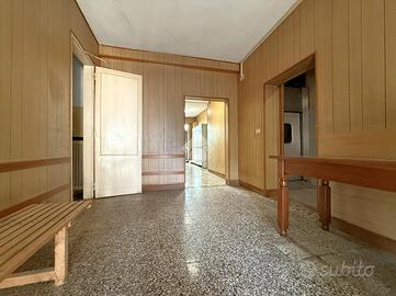 L'abitazione è sviluppata su due livelli, attualmente formata da più unità. Al piano terra si trova luminoso ingresso, disimpegno e bagno con lavanderia finestrato con doccia. Sempre al piano terra si trova un ambiente spazioso, attualmente adibito a laboratorio, dove eventualmente si può studiare una luminosa zona giorno openspace. Completano il piano ampio disimpegno, bagno ventilato con doccia e centrale termica. Salendo al piano primo si trova la zona notte, con tre camere da letto, di cui una dotata di cabina armadio e una dotata di uscita sul terrazzo esposto a Nord. Bagno finestrato con vasca, collegato con sottotetto/ripostiglio. Ulteriore ingresso a lato Nord della proprietà.