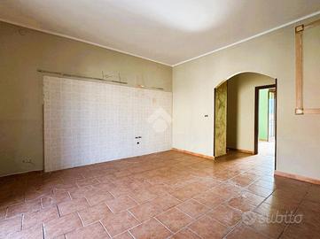 In zona residenziale porzione di fabbricato con ingresso indipendente si sviluppa su un unico livello di circa 130 mq, suddiviso in due appartamenti. Il primo appartamento è composto da un'ampia cucina, bagno con doccia e finestra, cameretta anch'essa con finestra e camera matrimoniale con balcone che offre una vista panoramica. Il secondo appartamento, invece, dispone di un salone con angolo cottura, bagno cieco con vasca e due camere da letto matrimoniali. Quest'ultimo appartamento ha un balcone che collega al piano seminterrato, dove si trova un'area comune che dà accesso alla cantina di circa 50 mq, ancora da rifinire. L'immobile si presenta in buone condizioni generali, con predisposizione per i termosifoni e dispone di una possibilità di parcheggio davanti alla casa.