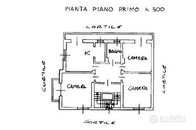Tramite grande vano scala il secondo appartamento di c.a. 118 mq, è suddiviso in cucina, soggiorno, due grandi camere da letto ed un servizio. In questo alloggio è stata rivista la pavimentazione.