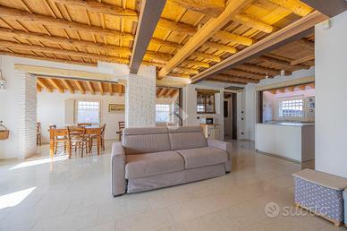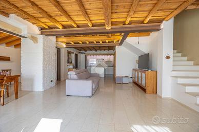 Zona notte: al piano superiore, due spaziose camere entrambe con soppalco, ideali come studio privato o area relax, e affacci panoramici suggestivi. Un ampio bagno, dotato di doccia e vasca, completa il livello.