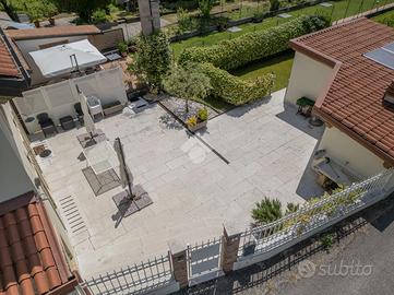 La proprietà dispone inoltre di garage doppio e di un giardino privato, vera oasi di quiete e riservatezza, ideale per momenti di relax all'aperto.