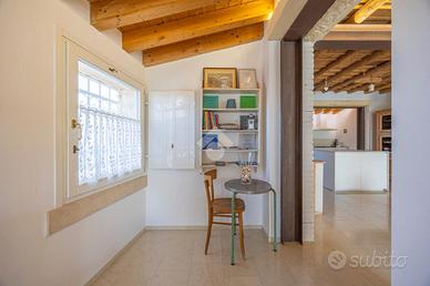 Zona giorno: ampio open-space estremamente luminoso, con affaccio diretto sulla corte e sul giardino privati, accompagnato da un bagno finestrato completo.
