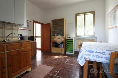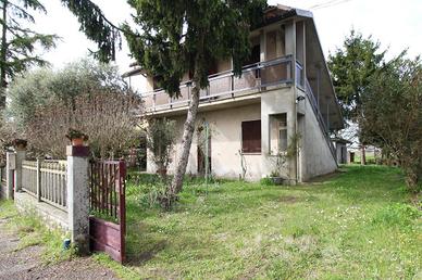 L'immobile è una casa indipendente circondata da circa 1.454 mq di giardino a cui si aggiungono altri 1.169 mq di terreno retrostante. Ubicata nel comune di San Pietro in Casale, in contesto di campagna ma non isolato. Il fabbricato si compone di due unità sviluppate rispettivamente al piano terra ed al piano primo, entrambe con ingresso indipendente. Si tratta di due bilocali, con zona giorno openspace e camera da letto matrimoniale. Gli ambienti del piano superiore affacciano su due balconi distribuiti su due lati della casa. La proprietà comprende tre fabbricati di circa 20 mq ciascuno, accatastati come magazzini. L'immobile è stato costruito negli anni Ottanta e mantiene le caratteristiche dell'anno di costruzione.