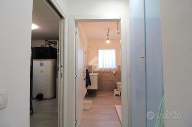 Al piano terra si accede tramite ingresso su un'ampia e luminosa sala da pranzo. Seguono una cucina con dispensa, un bagno, un ripostiglio e un ulteriore vano tecnico dedicato agli impianti.