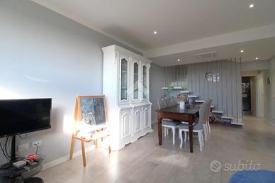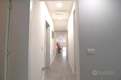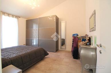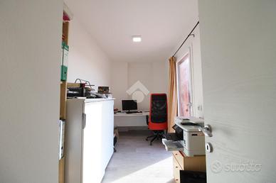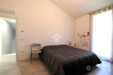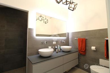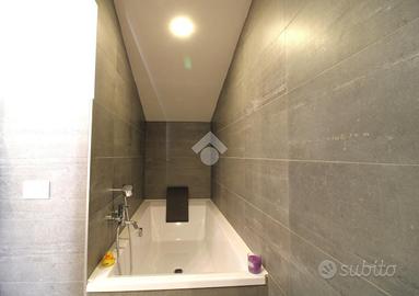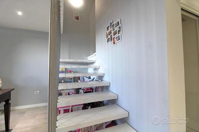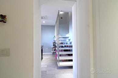 Al primo piano troviamo due camere da letto matrimoniali, uno studio dotato di giardino pensile, un bagno caratterizzato dalla presenza sia della doccia che della vasca e un'ulteriore camera mansardata.