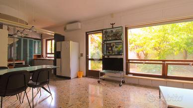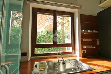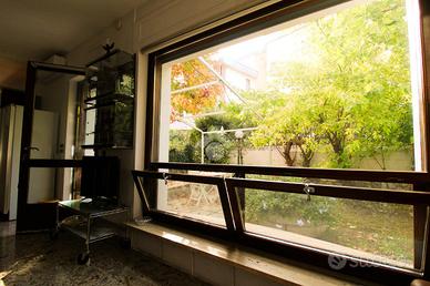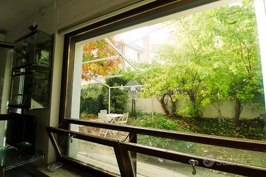 -Comodo appartamento con luminosa zona giorno con affaccio su giardino; -Camera da letto matrimoniale con cabina armadio; -Bagno finestrato ben rifinito e dotato di doccia; - Ampio giardino che circonda la proprietà; -Box auto adibito a studio con bagno di servizio.