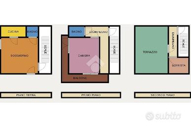 Primo piano con camera da letto e bagno, al secondo piano cameretta, al terzo livello vano plurisuso con affaccio su terrazzo.