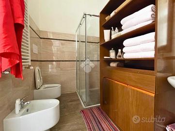 Completano il piano un bagno con affaccio con balcone su Corso Leone Mucci e un ripostiglio adiacente alla camera da letto, perfetto anche come cabina armadio.