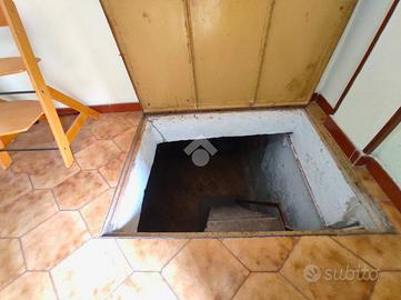 Dal soggiorno si accede direttamente al piano interrato, perfetto come deposito o cantina, ideale per chi necessita di spazio aggiuntivo.