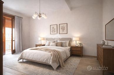 Il primo piano ospita l'abitazione principale, composta da ingresso su disimpegno, cucina abitabile e soggiorno separato con la possibilità di realizzare un moderno open space. La zona notte comprende camera matrimoniale, cameretta, bagno finestrato e ripostiglio. La presenza di due balconi garantisce luminosità e affacci ariosi.