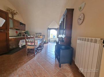 L'immobile è articolato su due livelli: al piano terra ampia zona giorno con cucina abitabile con accesso al giardino,salottino con camino; al piano primo camera da letto matrimoniale, cameretta e bagno.
