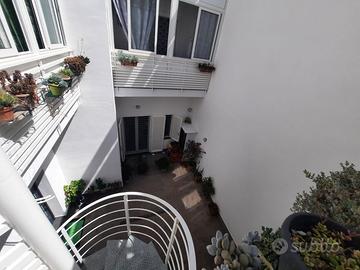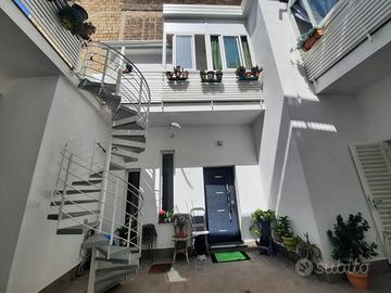 composta da abitazione piano giorno e piano notte collegati da ascensore interno e scala, con terrazzo e cortile d'ingresso.