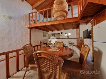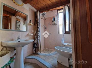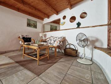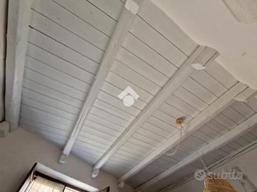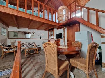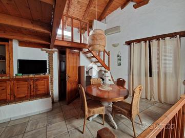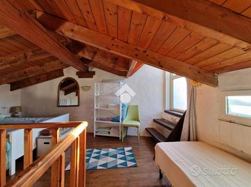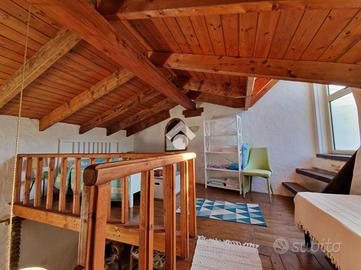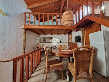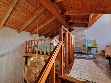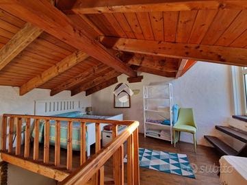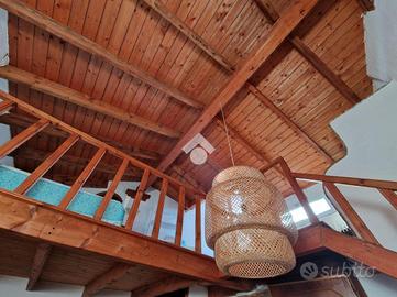 Sullo stesso livello si trova il secondo bagno finestrato, con doccia. Dalla zona giorno si accede tramite la scala in legno al secondo piano soppalcato, adibito a zona notte, spazioso e luminoso, con travi a vista, è accesso con porta-finestra al terrazzo.