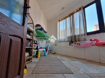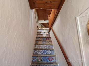 All'appartamento si accede tramite una tipica scala in graniglia impreziosita da maioliche colorate che ci da accesso diretto alla cucina soggiorno con zona cottura a vista divisa, un'accogliente open-space, spazio da condividere in compagnia di amici e della famiglia.