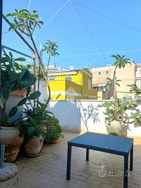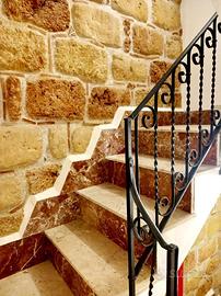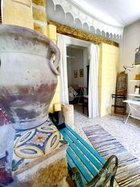 I totali 107 mq del terracielo proposto in vendita, hanno subito una ristrutturazione conservativa nella quale è stata prestata molta attenzione nel recuperare e preservare le autenticità che la caratterizzano senza però alterare l'aspetto originale; infatti al suo interno troviamo tipici mattoni dei primi del 900, suggestivi disegni, pitture anche d'epoca e antiche mura in tufo locale proveniente dalle cave della vicina Bagheria .
