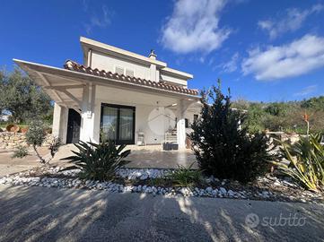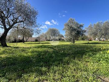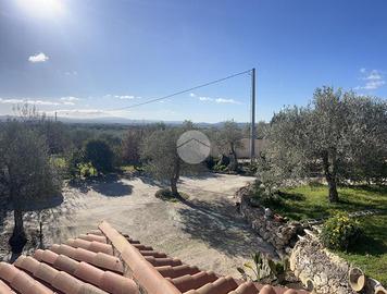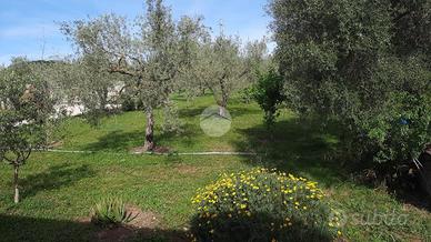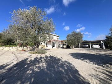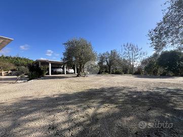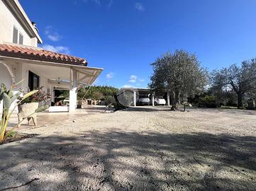 Gli spazi esterni si presentano molto curati: oltre la veranda coperta si può godere di un ampio cortile cementato dove poter comodamente parcheggiare le auto. Il tutto circondato da un terreno pianeggiante ed interamente piantumato ad ulivi ed alberi da frutto.