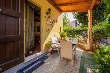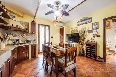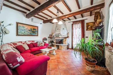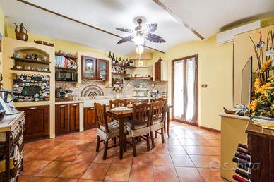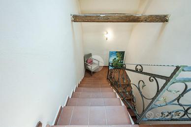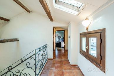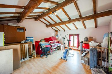 PIANO TERRA: ingresso, cucina abitale, soggiorno e giardino privato di circa 45mq, accesso all'autorimessa; PRIMO PIANO: due camere da letto matrimoniali; SECONDO PIANO: zona soffitta ideale per ricreare facilmente altre due camere matrimoniali oppure spazi adatti alle esigenze familiari e bagno finestrato; PIANO INTERRATO: zona cantina suddivisa in taverna, ripostiglio e lavanderia.